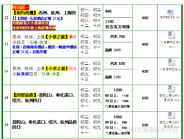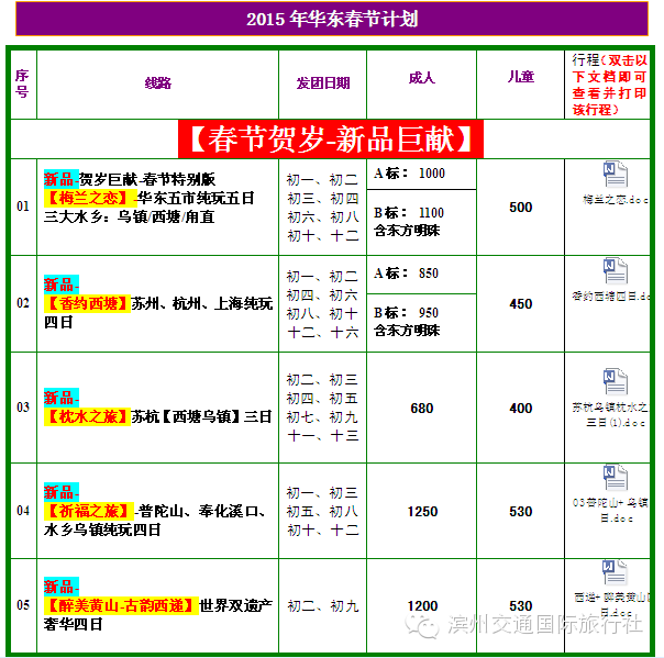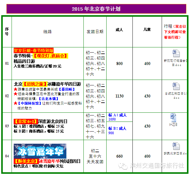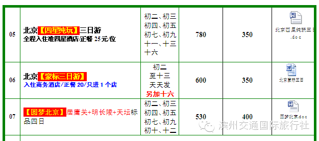 春節(jié)期間國內(nèi)北京、華東系列報價